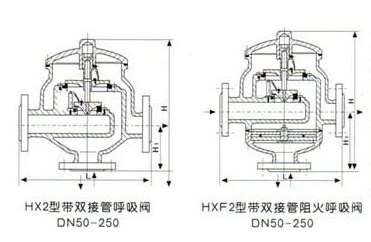 HXF2带双接管呼吸阀根据国家标准《石油化工企业设计防火规范》(GB50160-92)之规定:甲、乙类液体的固定顶罐,应设阻火器和呼吸阀。可见呼吸阀、阻火器是储罐不可缺少的安全设施。它不仅能维持储罐气压平衡,确保储罐在超压或真空时免遭破坏,且能减少罐内介质的挥发和损耗。上海千亿app官方web站登入-千亿(中国)厂生产的呼吸阀,具有结构紧凑、通气量大、泄漏量小、密封性能好等特点。
