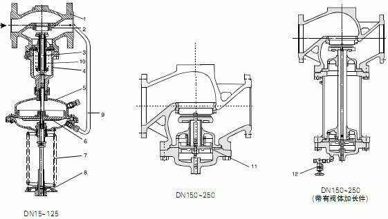 7  | 弹簧  | 8  | 调节螺母  | 9  | 导压管  | 10  | 波纹管  | 11  | 平衡膜片  | 12  | 充注阀  |