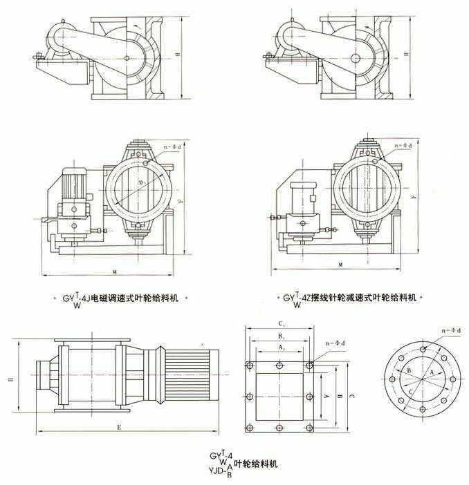A(A1)  | B(B2)  | C(C1)  | n-φd  | H  | M  | F  | E  | GYW-4  | GYW-4Z  | GYW-4J  |