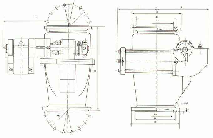 公称压力PN  | 公称通径DN  | D  | D1  | D2  | b  | f  | n-φd  | L  | L1  | L2  | H  | 管接头  | 气缸型号  |