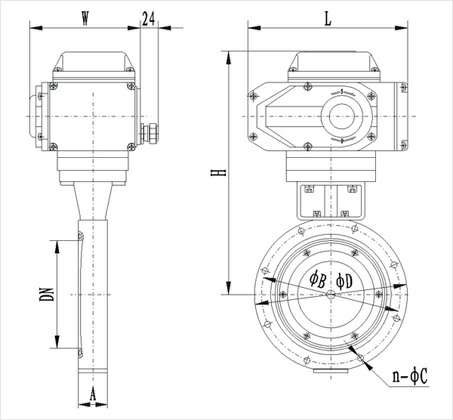 型号  | 通径(DN)  | ΦD  | ΦB  | H  | A  | L  | W  | n-ΦC  |