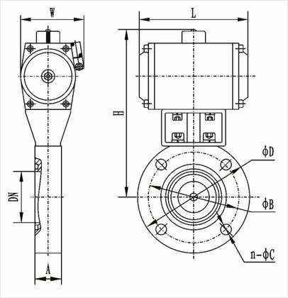 型号  | 通径(DN)  | ΦD  | ΦB  | H  | A  | L  | W  | n-ΦC  |