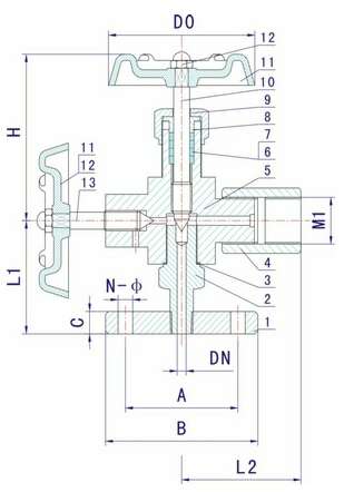 公称通径 DN  | M1  | B  | L1  | L2  | H  | D0  |